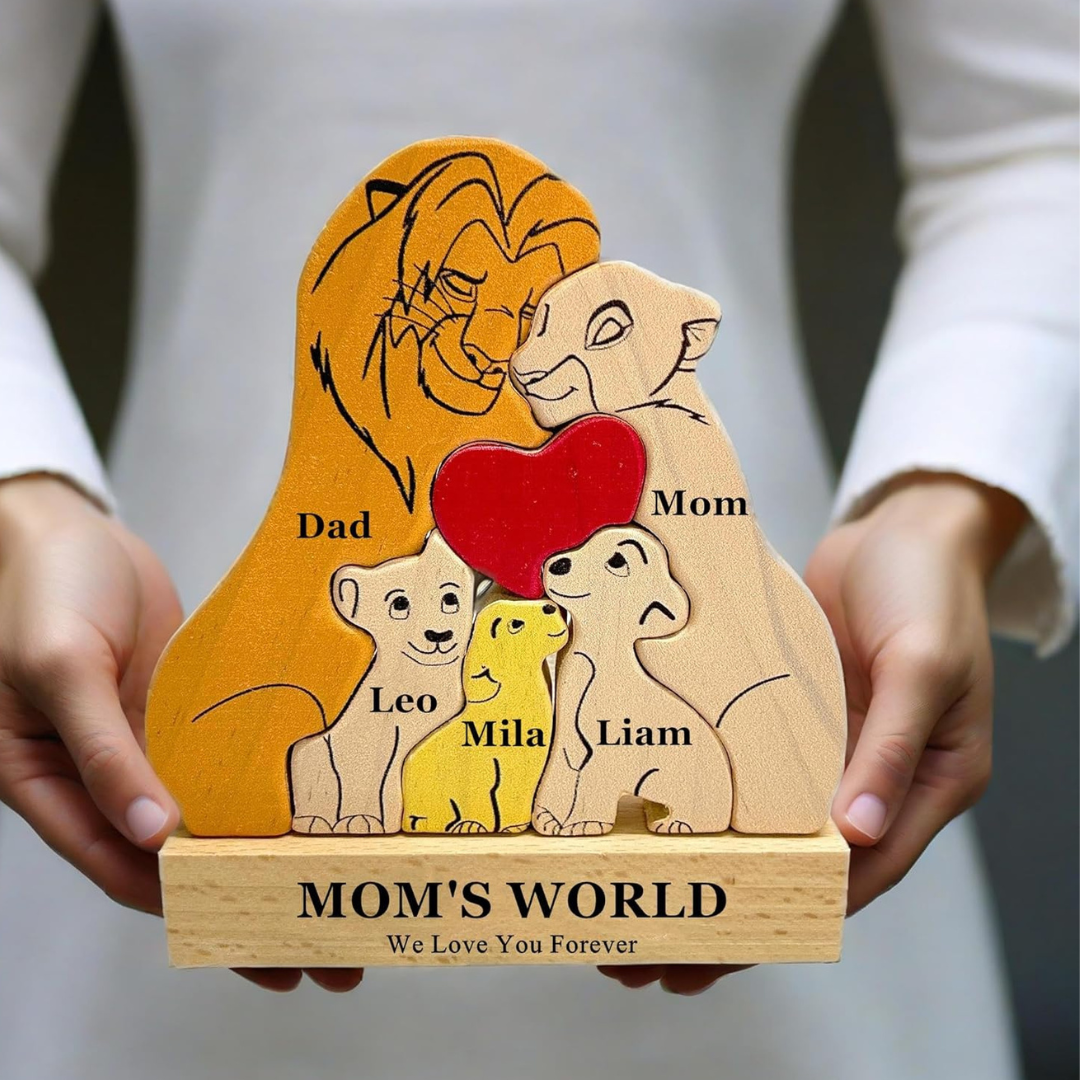 A beautifully crafted wooden puzzle personalized for your family — a warm reminder of love and connection that adds a heartfelt touch to any space.